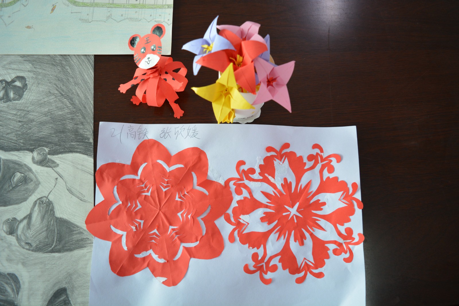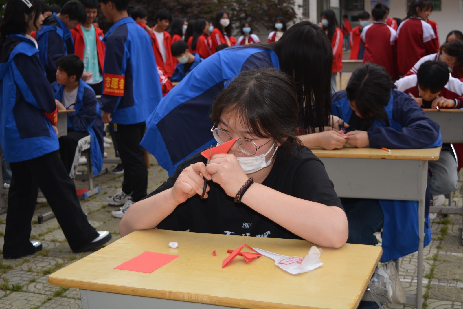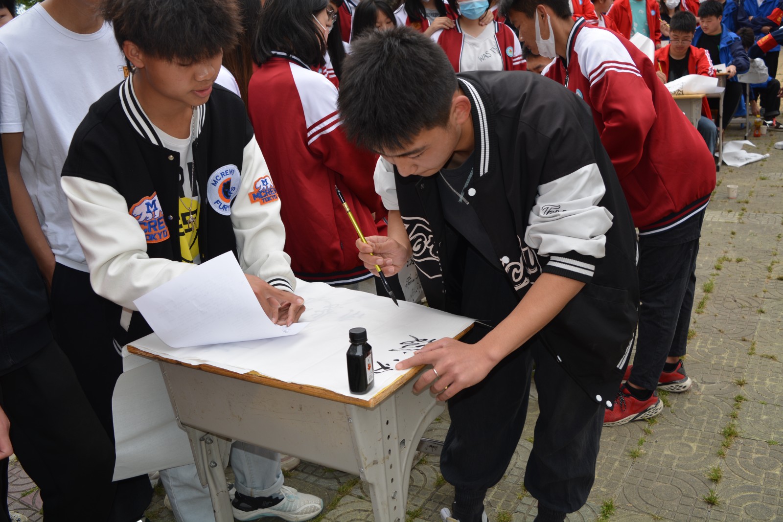 才艺比赛作为收官之战在文体艺术节的最后一天进行,各班“身怀绝技”的同学齐聚操场,现场或挥墨书写、或妙手丹青,或手持剪刀化腐朽为神奇,将艺术的优美发挥得淋漓尽致,也激发了全体学生对艺术的兴趣和向往,优秀的作品当场展出,更是让围观的同学们心驰神往,也让校园里充盈着美好的墨香。